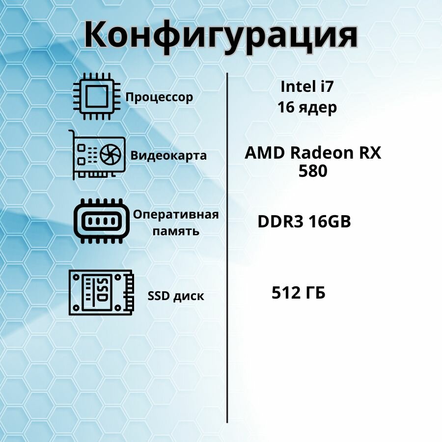 Компьютер для игр и учебы intel i7/RX-580-8G/16GB/SSD-512/Монитор 22" информация: