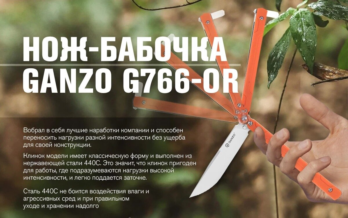 Отзывы на Нож бабочка складной туристический тактический GANZO G766 оранжевый для рыбалки охоты выживания
