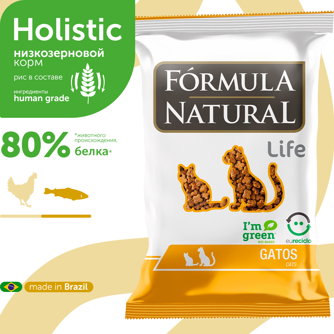 10 цен на Сухой корм для стерилизованных или кастрированных кошек и котов, Formula Natural Life Super Premium - низкозерновой, с лососем, Бразилия, 500 гр