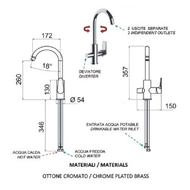 Смеситель для кухни с подключением к фильтру с питьевой водой из нержавеющей стали SUS304 Calorie CAL50116-3