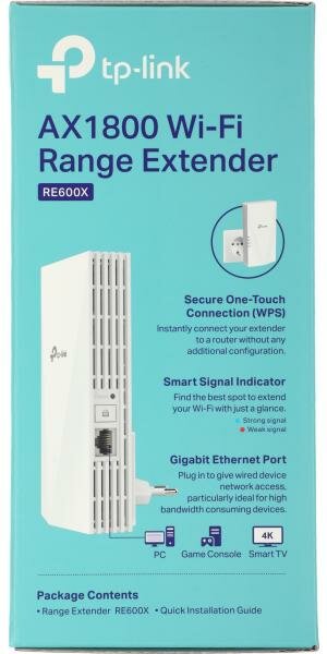 Повторитель беспроводного сигнала TP-Link RE600X AX1800 10/100/1000BASE-TX белый информация: