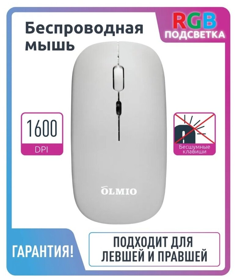 Мышь Olmio WM-21 беспроводная тихая с подсветкой белая 043977 информация: