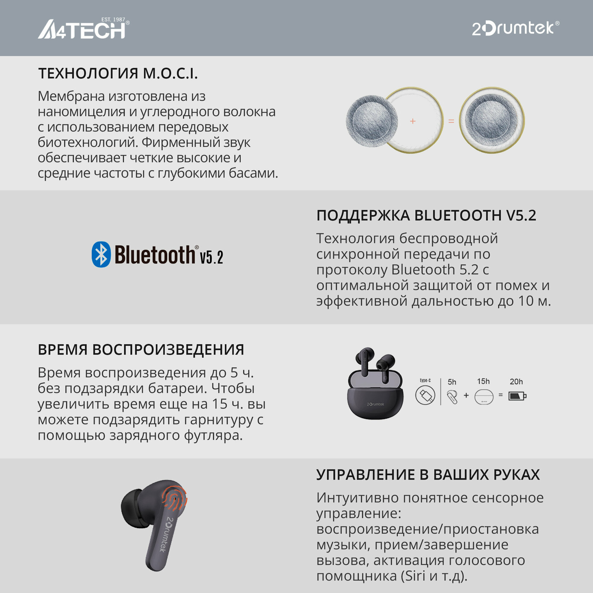 Отзывы на Гарнитура вкладыши A4Tech 2Drumtek B25 TWS пеп.серый беспроводные bluetooth (B25 ASH GREY)