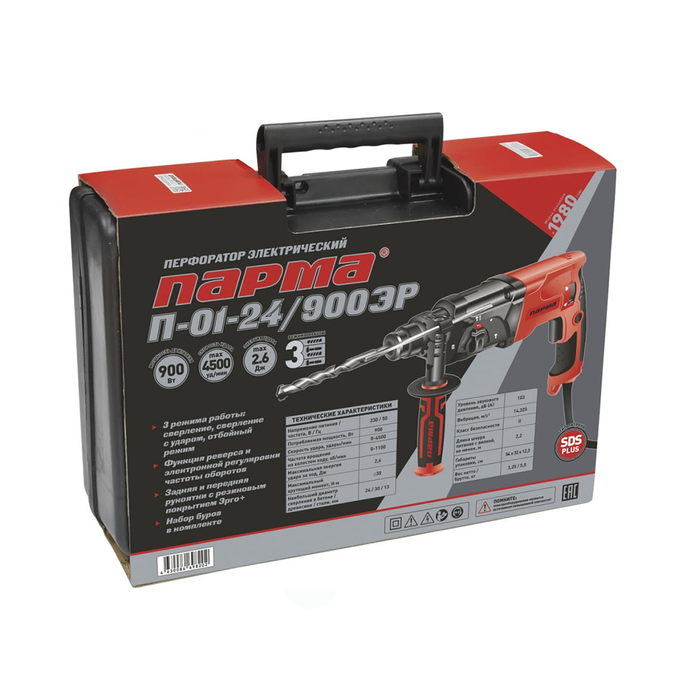 Отзывы на Перфоратор Парма П-01-24/900ЭР патрон:SDS-plus уд.:2.6Дж 900Вт (кейс в комплекте)