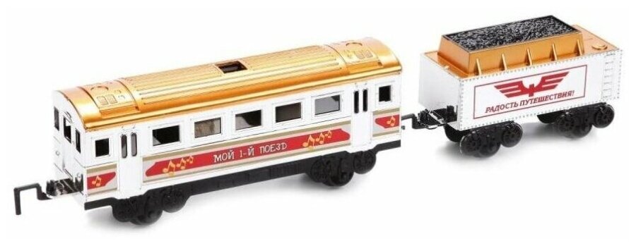 | Подробная комплектация | Локомотив, пассажирский вагон, вагон с углем, железнодорожная платформа рельсы, коробка |