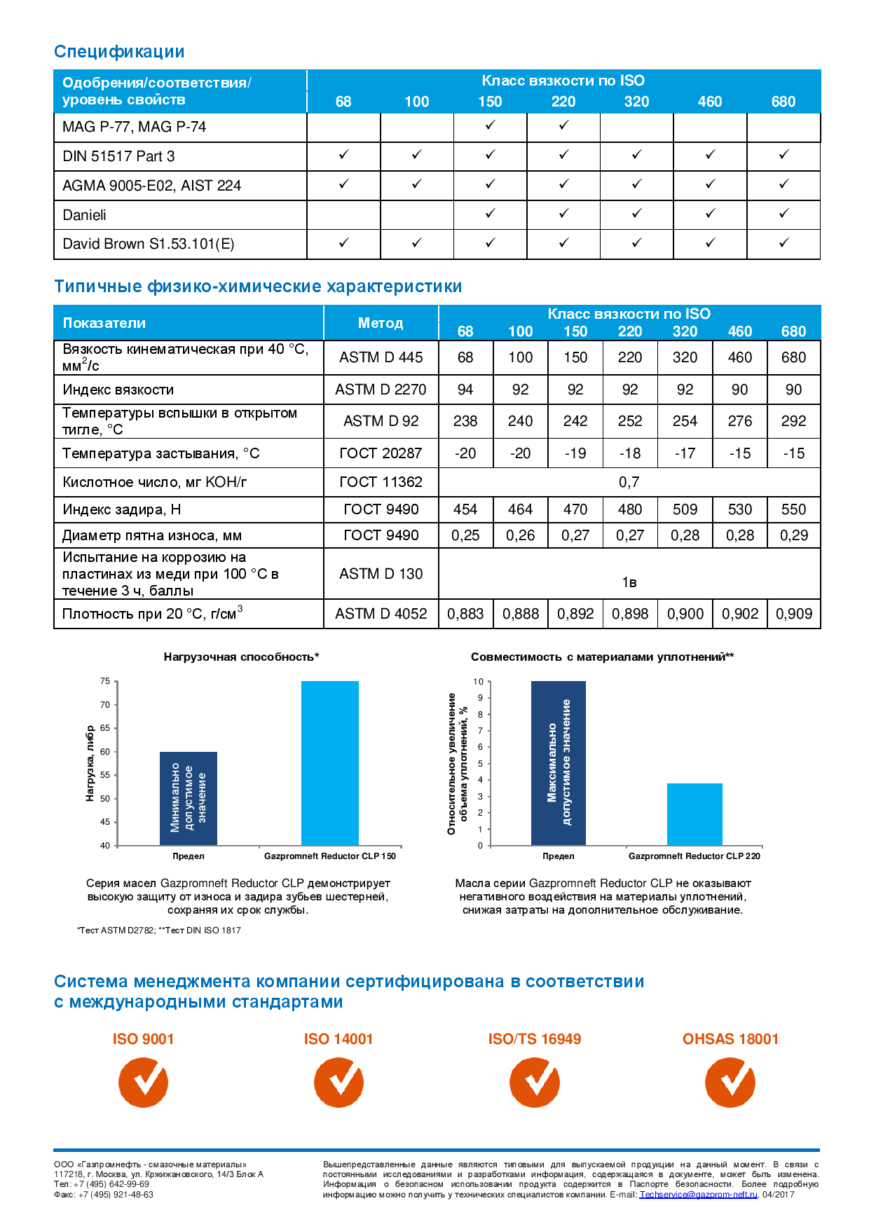 | Дополнительная информация | классификация по ISO: ISO 220, температура застывания -18 град |