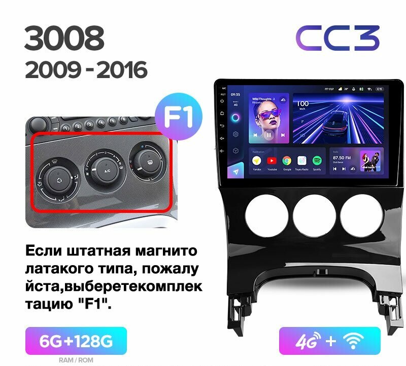 Магнитола TEYES PEUGEOT 3008 CC3 6/128ГБ рамка под кондиционер информация: