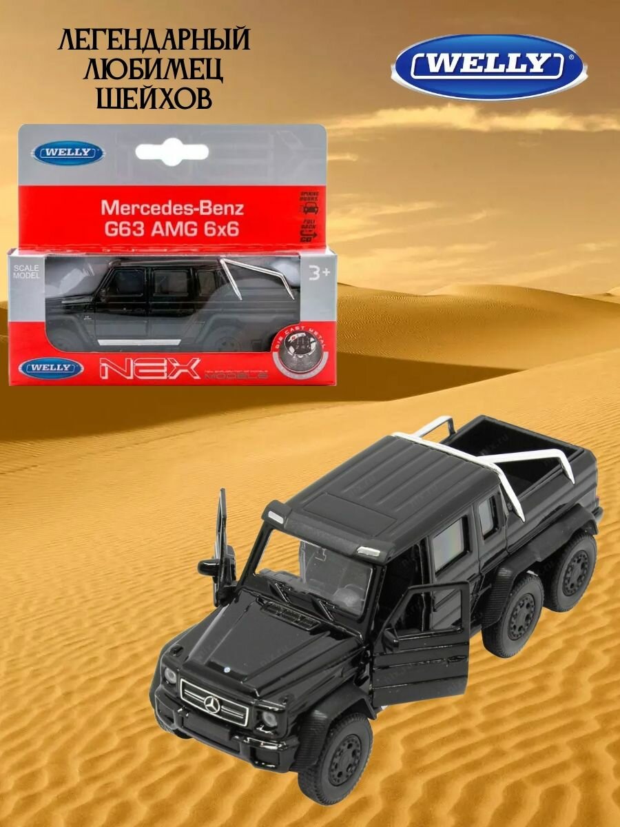 Машинка WELLY MERCEDES-BENZ G63 AMG 6X6 Черный / модель машины 1:38 с пружинным механизмом