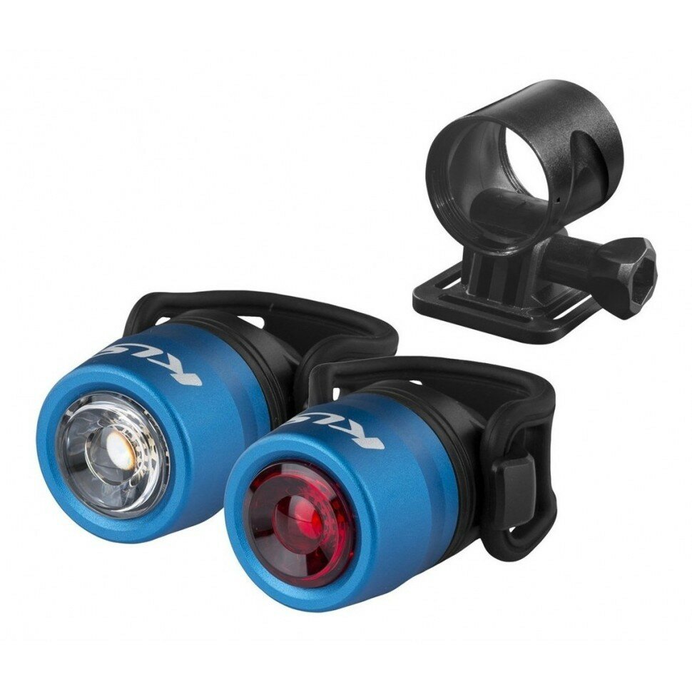10 цен на Комплект освещения KLS IO USB, 50лм/15лм, Cree LED, 3 режима, Li-pol 220 mAh, USB, синий
