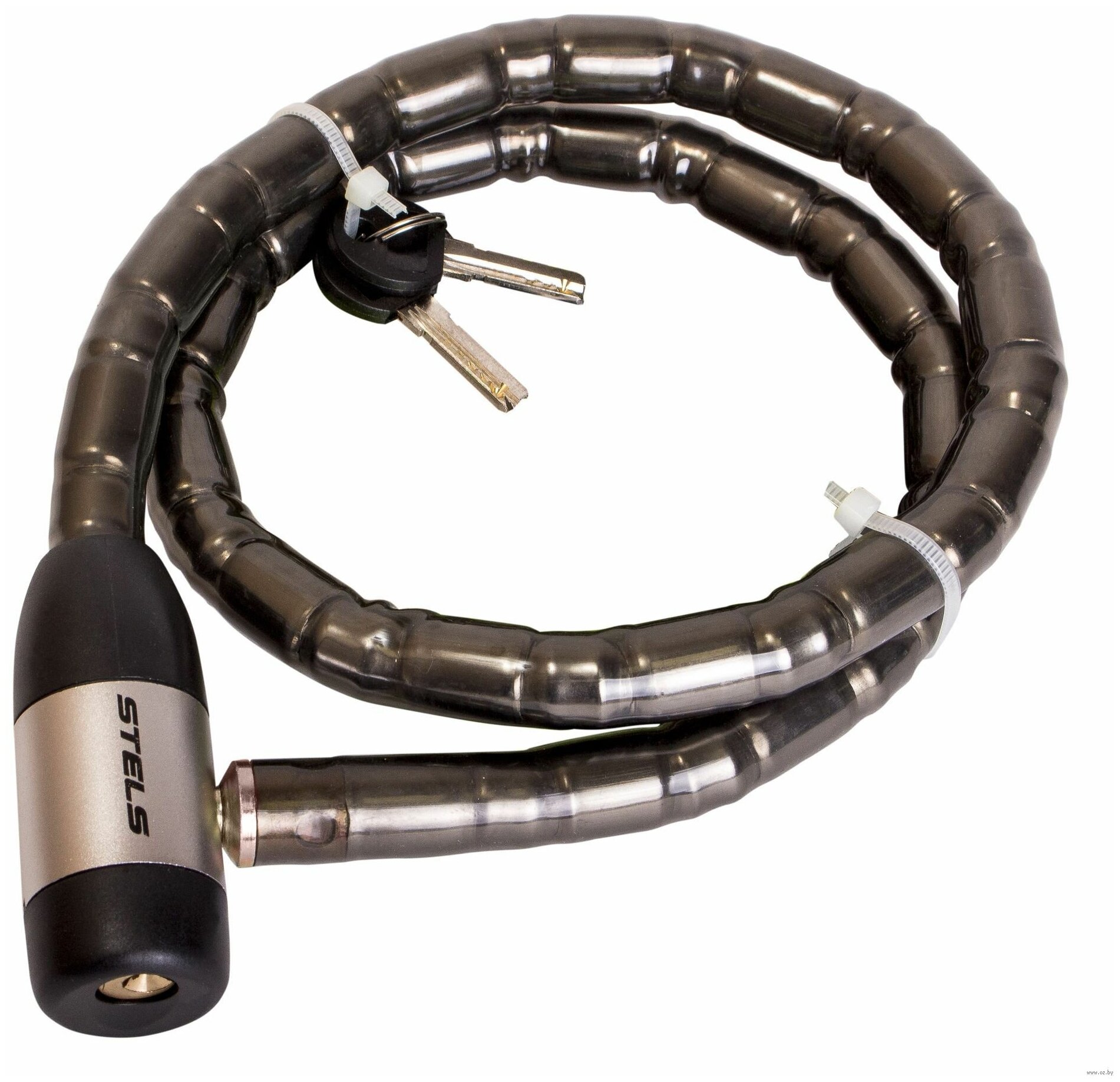 STELS Трос-замок 81715 с ключом со стальн. звеньями 18x1000мм чёрно-серебр. 540049 1 610 ₽