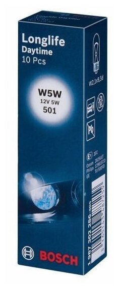 Лампа 12V W5w 5W Белый 1 Шт. Bosch Longlife Daytime 1 987 302 286 Bosch арт. 1 987 302 286 информация:
