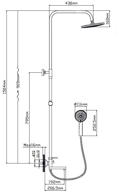 | Форма верхнего душа | круглая |