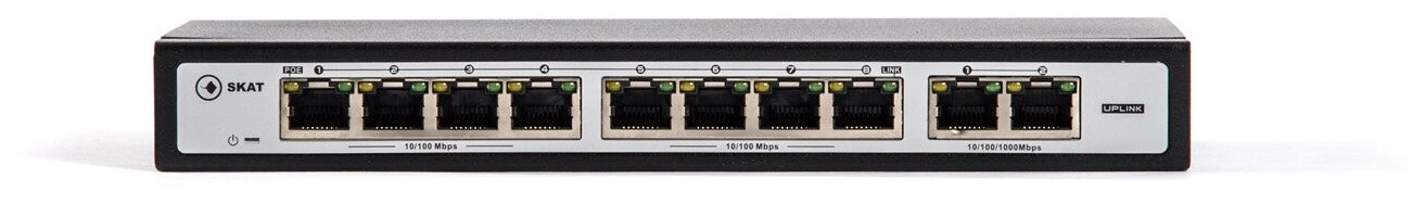 Коммутатор PoE неуправляемый 10-портовый Бастион SKAT PoE-8E-2G информация: