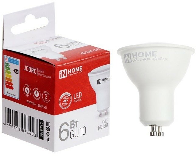 Отзывы на Светодиодная лампа IN HOME LED-JCDRC-VC 6Вт 230В GU10 4000К 480Лм 4690612023403