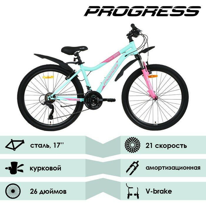 10 цен на PROGRESS Велосипед 26" PROGRESS Lira RUS, цвет мятный, р. 17"