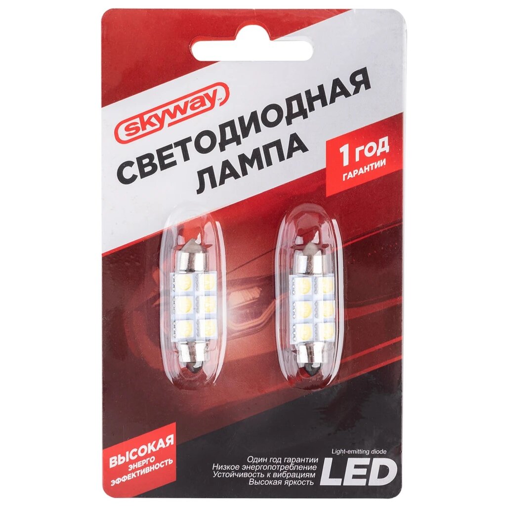 Отзывы на SKYWAY S08201175 Лампа диод T11(C5W) 12V 6 SMD Блистер c цоколем 1-контактная Белая компл. 2 шт. Cалон,номер; SKY