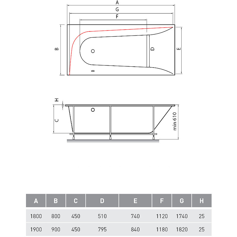Ванна Gamma 140х70 см, акриловая, на каркасе, экран к ванне Gamma 140