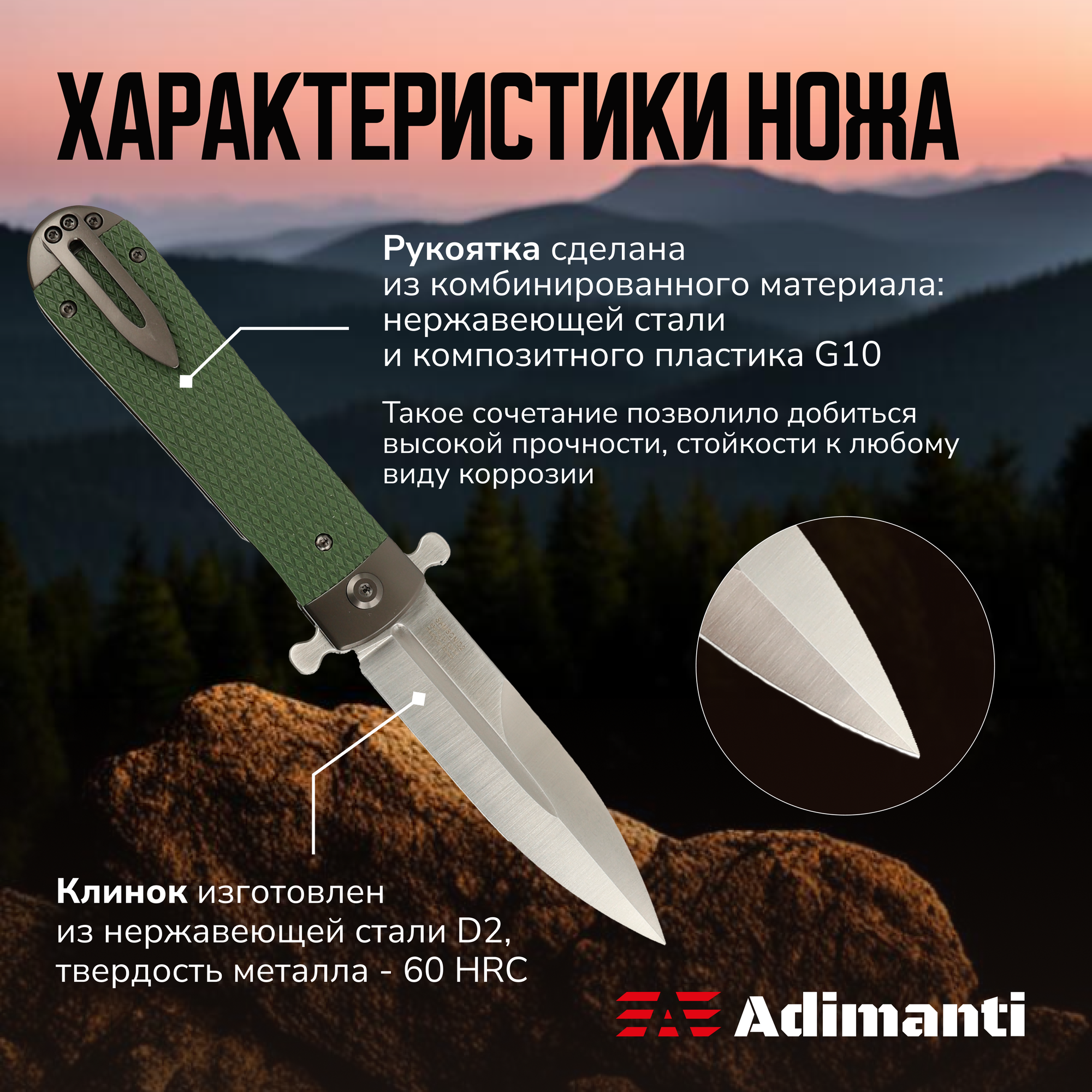 | Материал рукояти | сталь / стеклотекстолит G10 / ABS пластик |