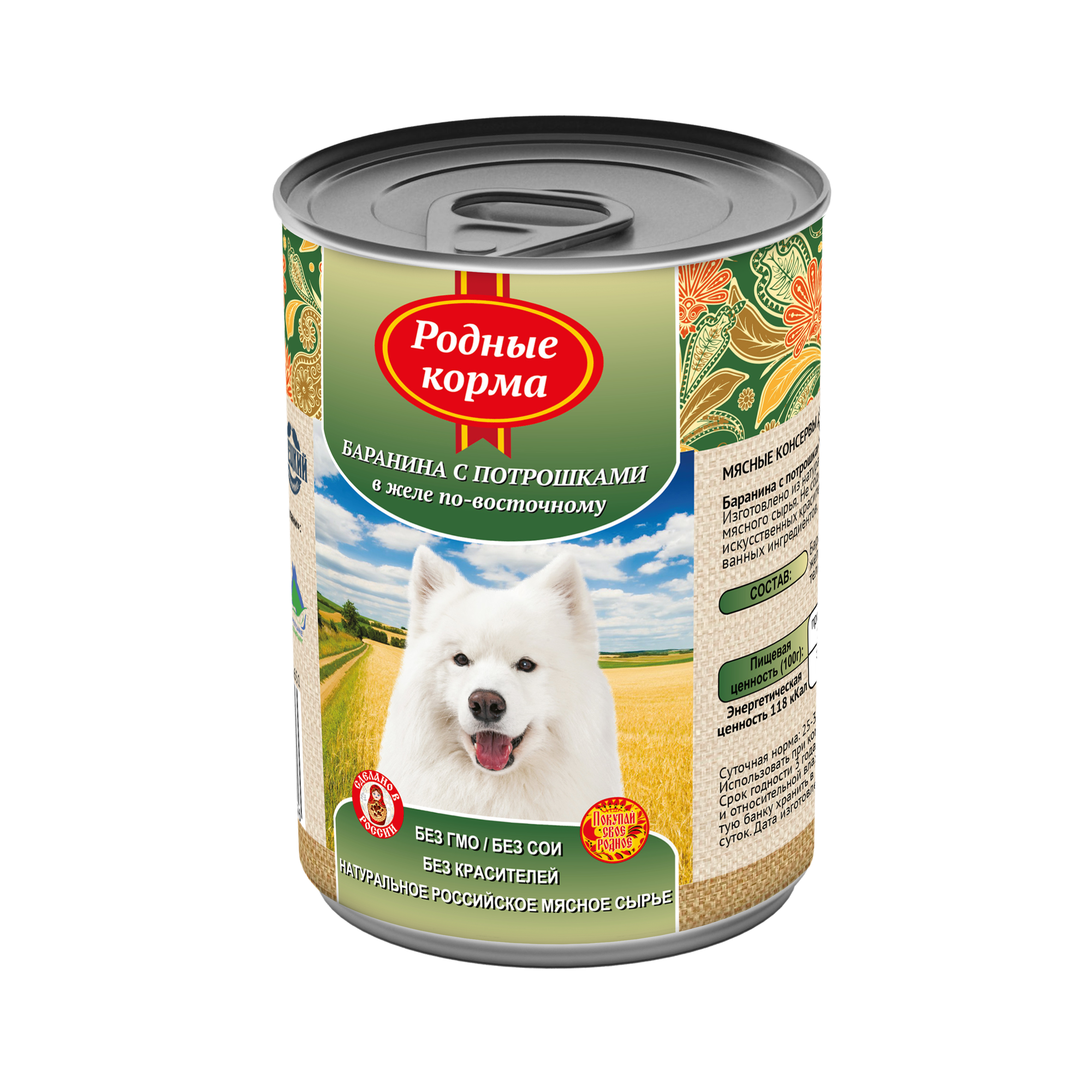 Влажный корм родные корма консервы для собак Баранина с Потрошками в Желе-По Восточному 970 гр