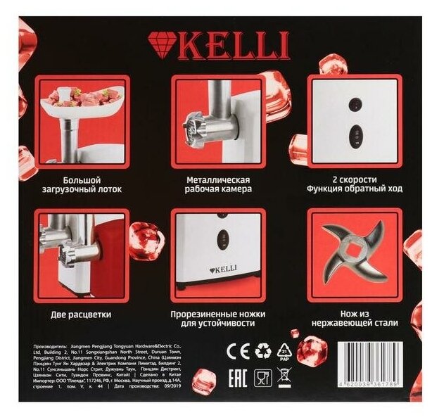 10 цен на Мясорубка электрическая KELLI KL-5003, 2400 Вт, 2 скорости, 5 насадок, белая