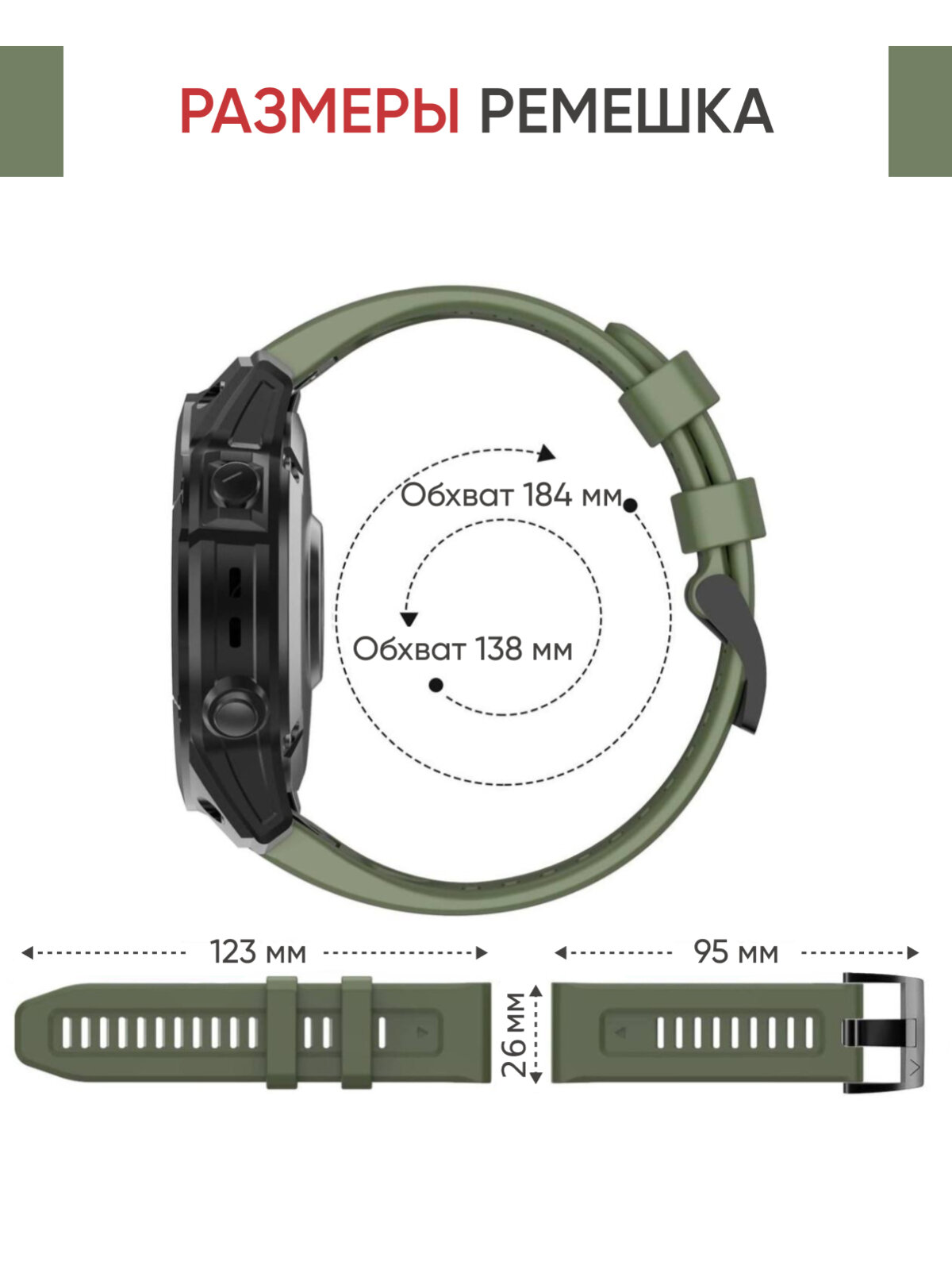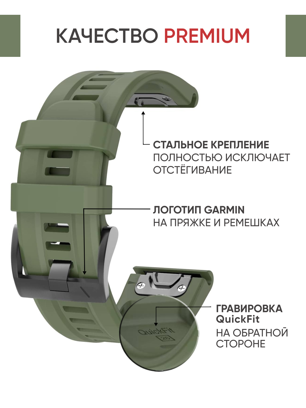 Силиконовый ремешок на часы Garmin Fenix 7X, 6X, 5X, 3, Garmin Enduro, Tactix Delta, быстросъемный QuickFit 26 мм с гравировкой премиум качество зеленый информация: