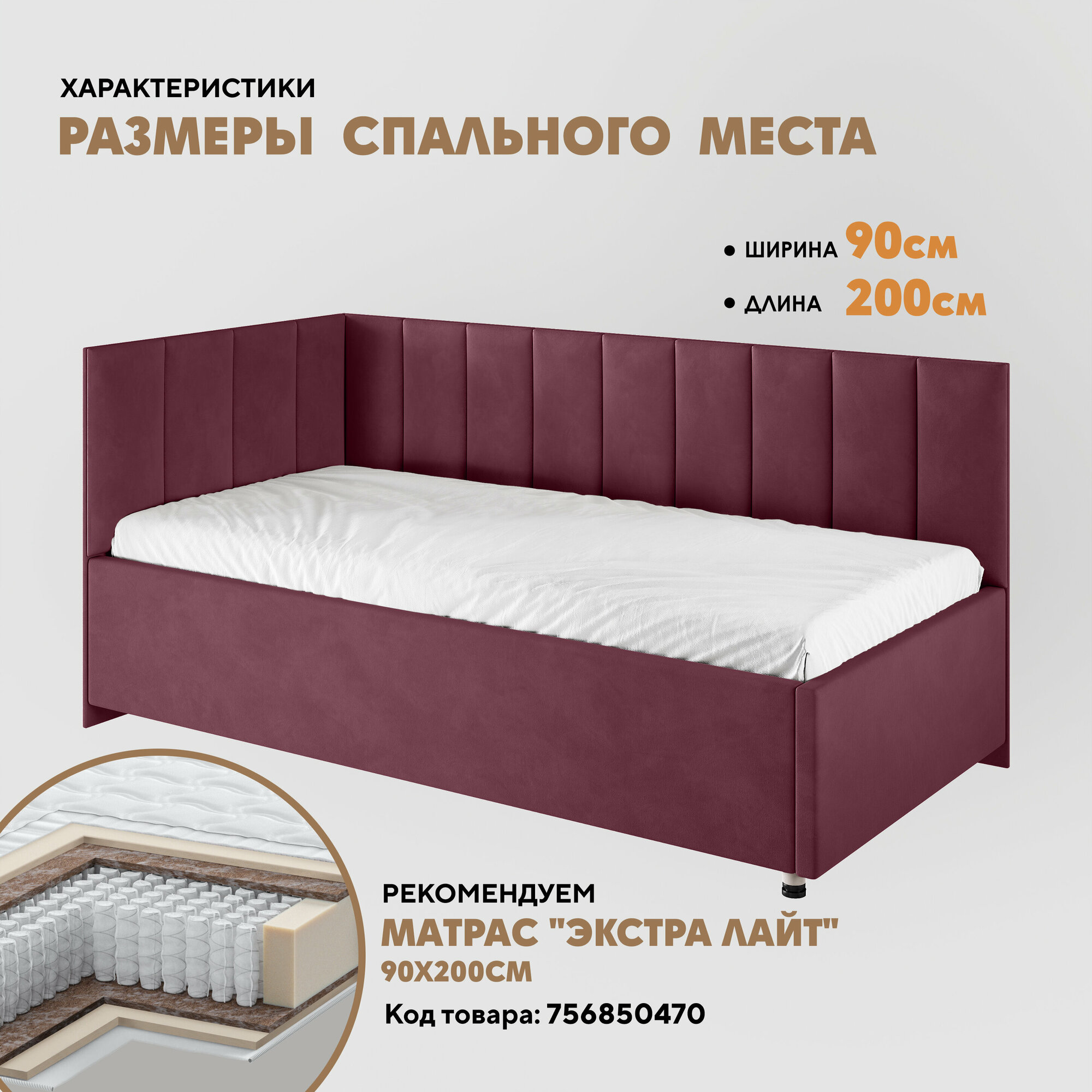 Кровать "Герда Литл" 90х200 (Velutto 15) угол слева информация: