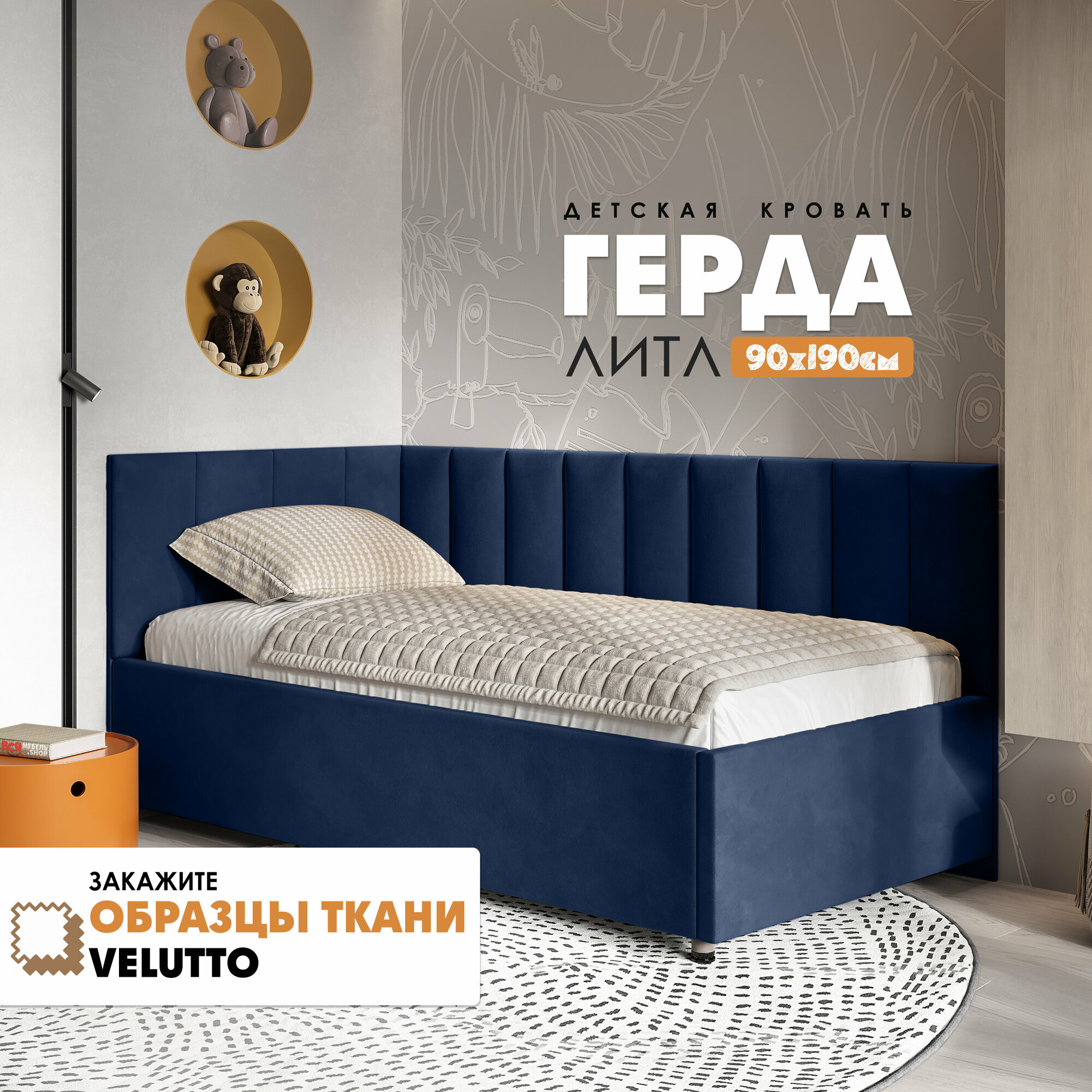 Кровать "Герда Литл" 90х190 (Velutto 28) угол слева