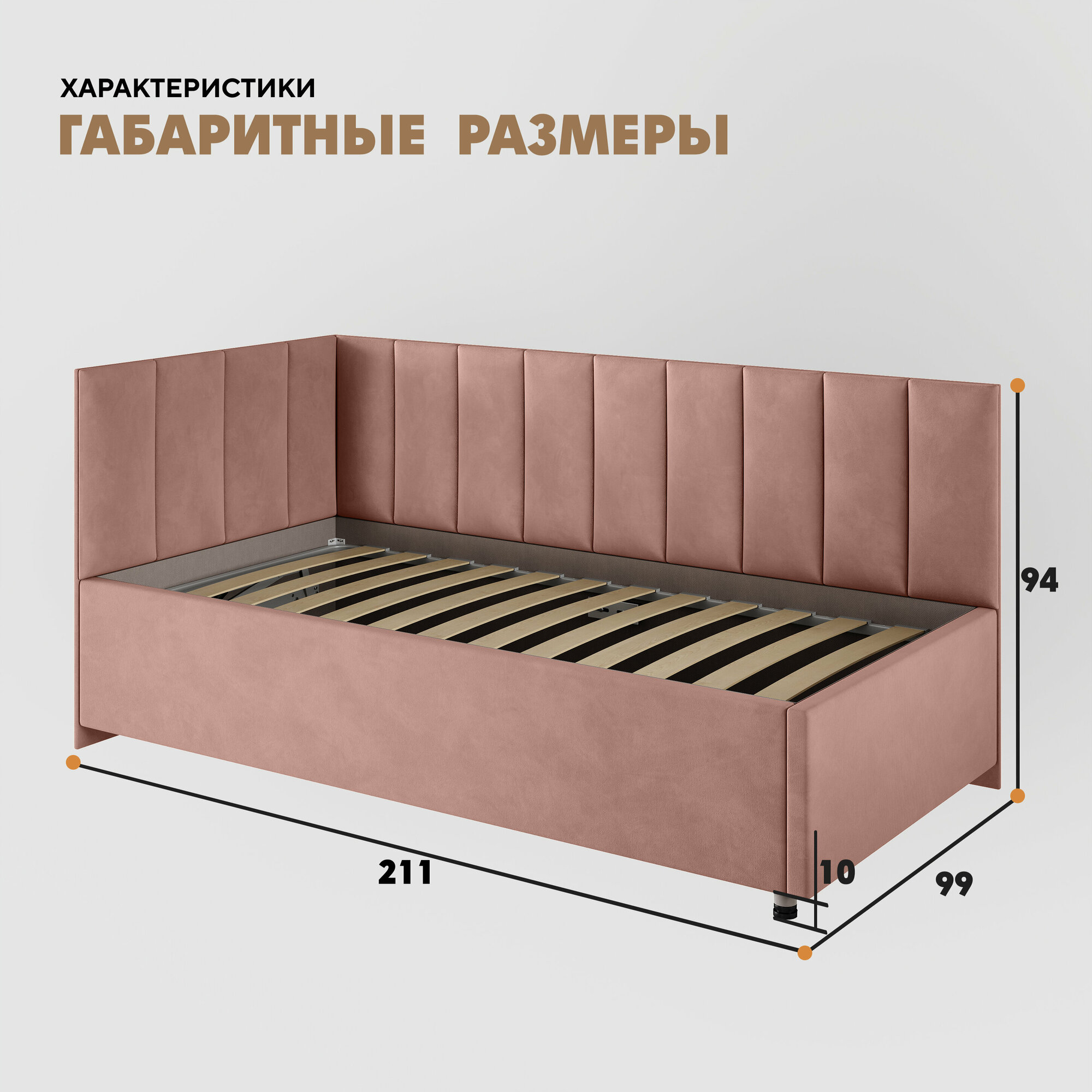 Кровать "Герда Литл" 90х200 (Velutto 55) угол слева информация: