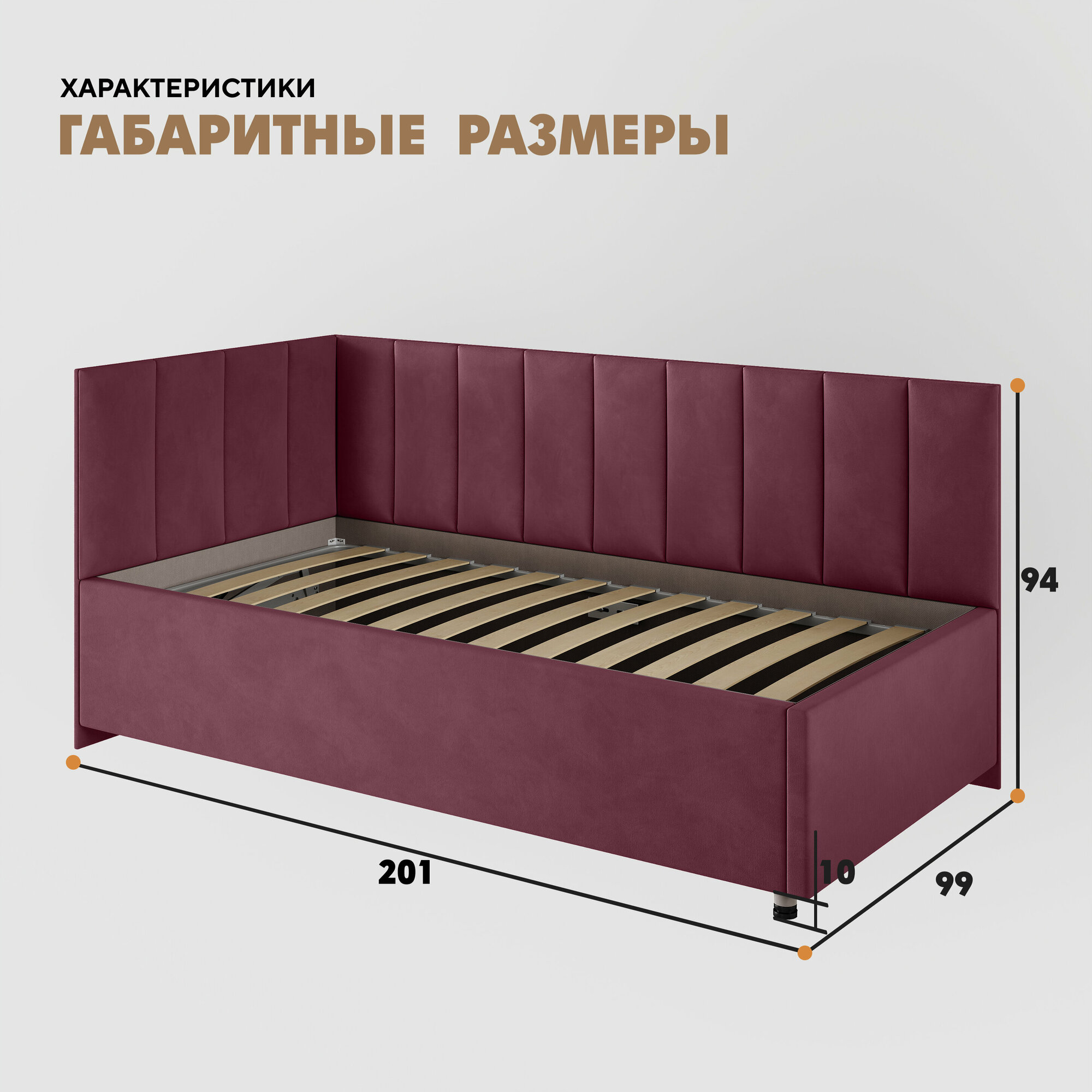 Кровать "Герда Литл" 90х190 (Velutto 15) угол слева информация: