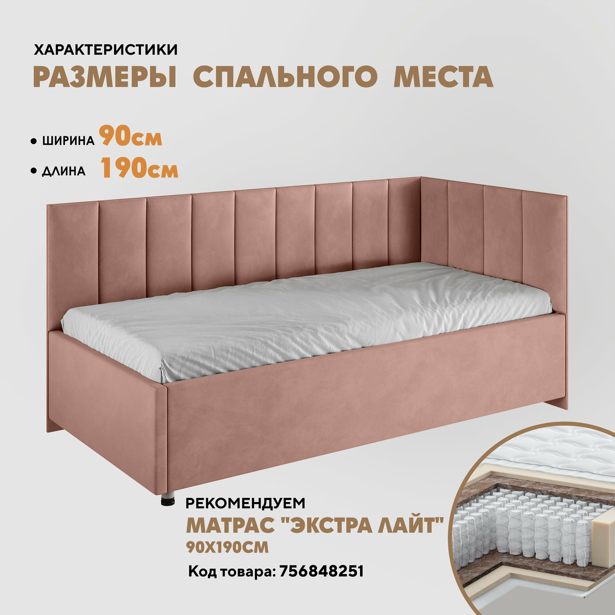 Кровать "Герда Литл" 90х190 (Velutto 55) угол справа информация: