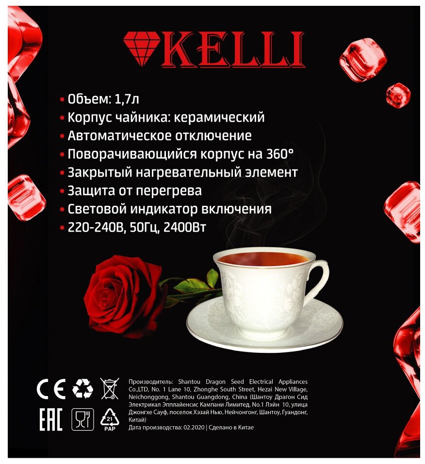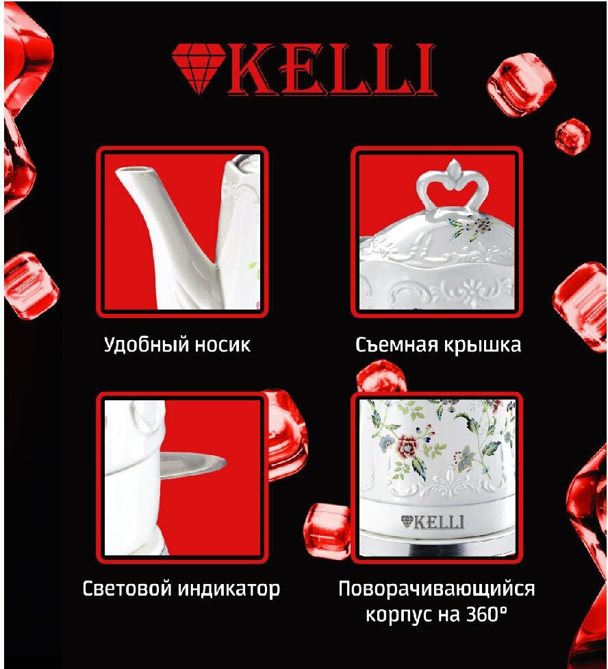 Керамический чайник Kelli KL-1401 объемом 1,7 литра информация: