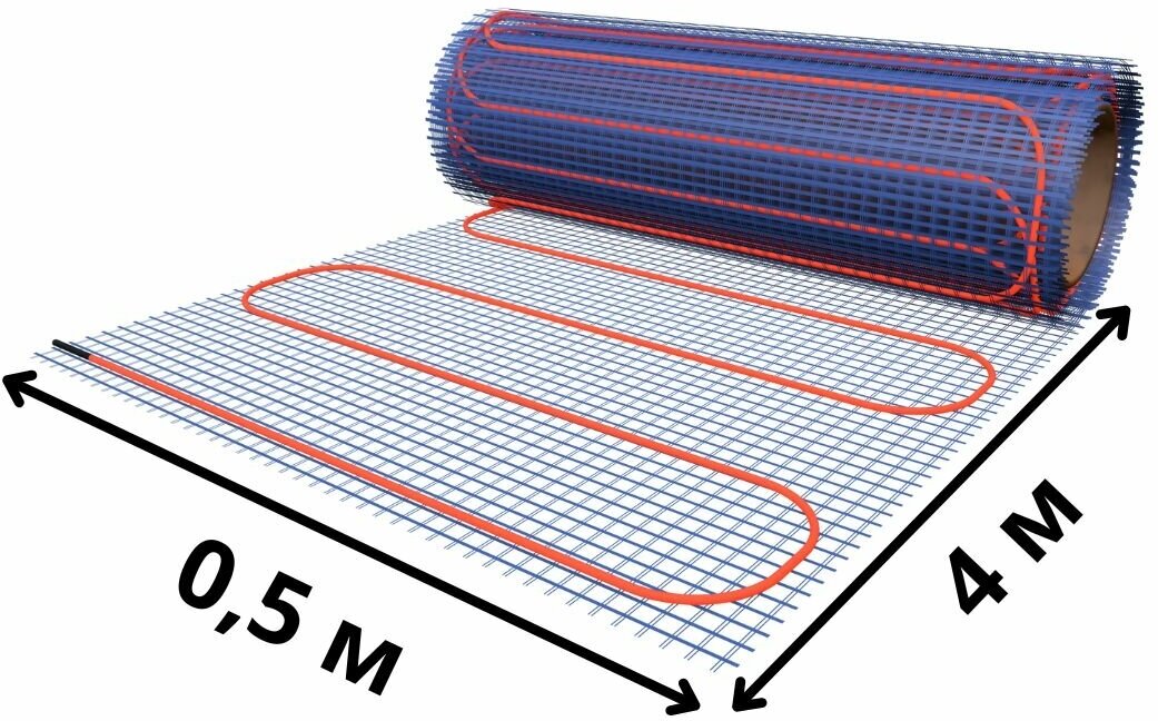Теплый пол электрический под плитку Ридан TF-150 0,5 м2 нагревательный мат тонкий на самоклеящейся сетке