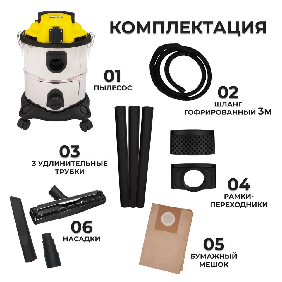 Пылесос строительный / промышленный Electrolite 20С информация: