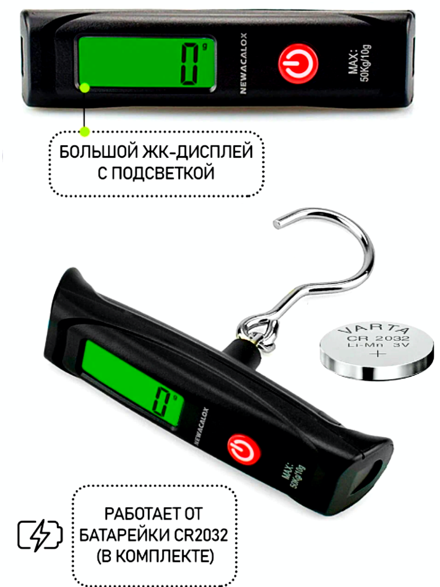 Весы багажные, безмен электронный WH-A18 до 50 кг, с крюком, цвет - черный