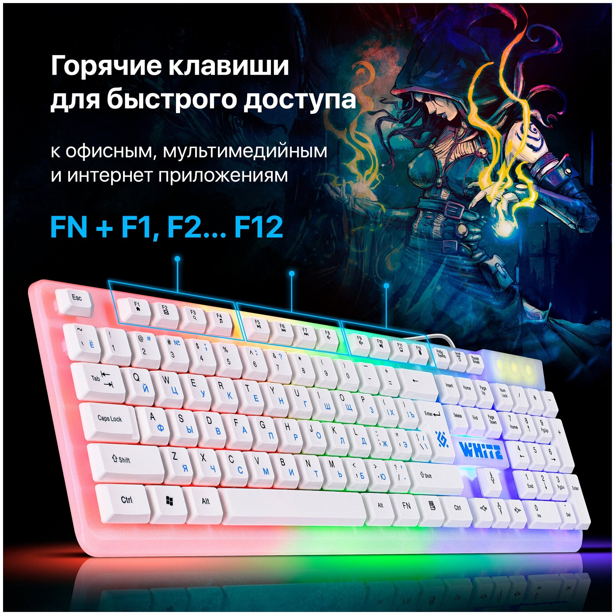 Игровая клавиатура для компьютера Defender White мембранная (Full-size) информация: