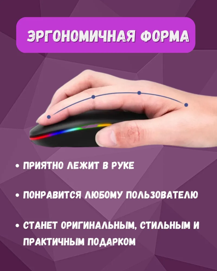 Отзывы на Мышь беспроводная компьютерная аккумуляторная, 3 режима DPI (800/1200/1600) Bluetooth + USB 2.4Ghz, RGB подсветка, Черная