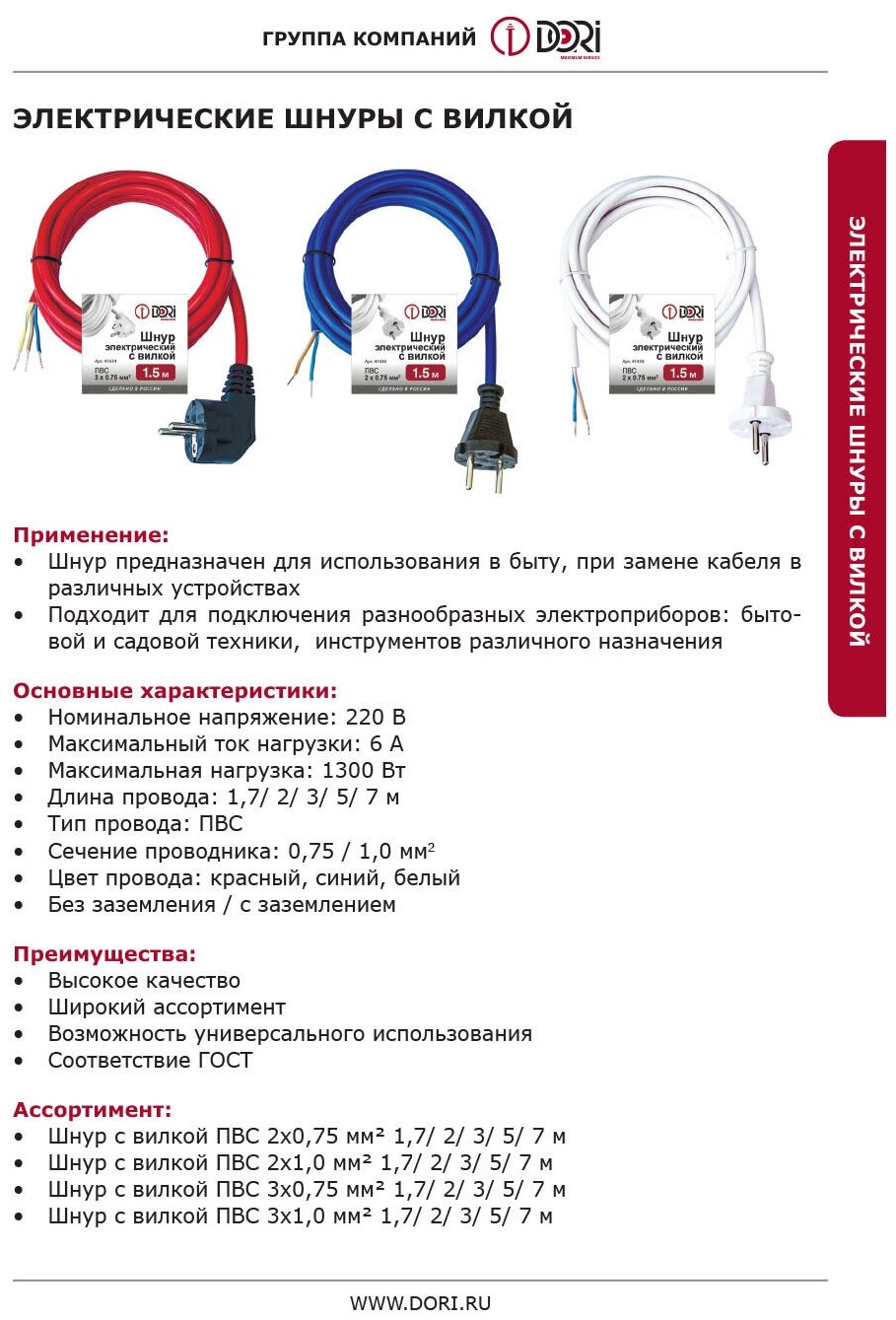 Шнур DORI ПВС 3х0,75 с вилкой белый 1,5м информация: