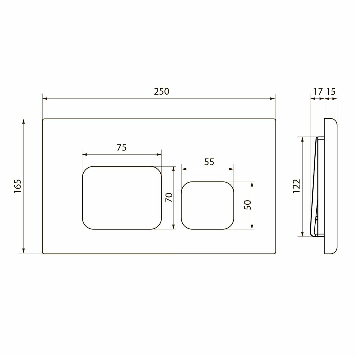 Клавиша смыва, TECE, TECEsolid, для унитаза, шгв 220-6-150, цвет-чёрный матовый