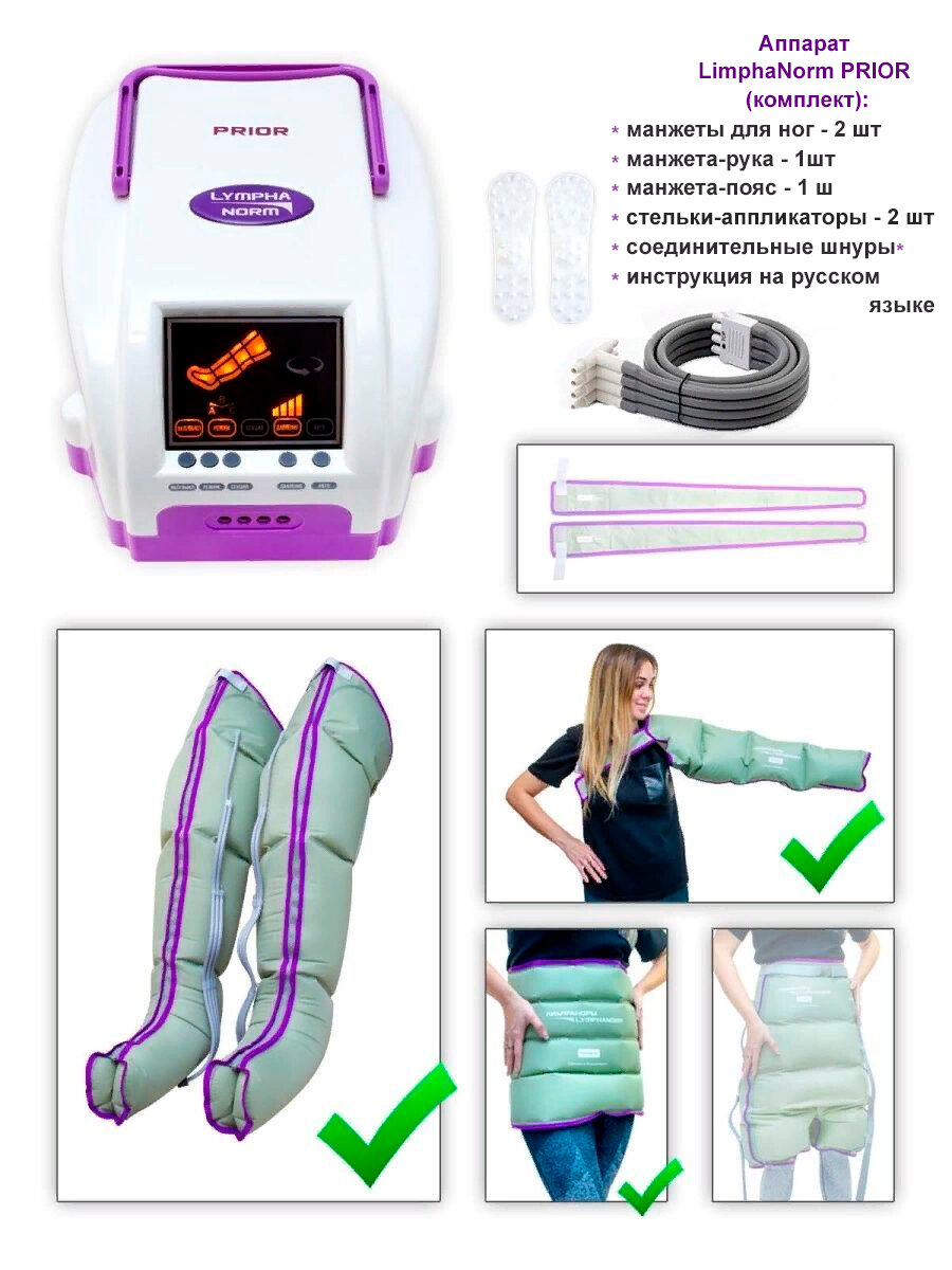 10 цен на Массажер для лимфодренажа и прессотерапии LymphaNorm PRIOR (размер L) + манжета-пояс XL + манжета для руки (82 см)