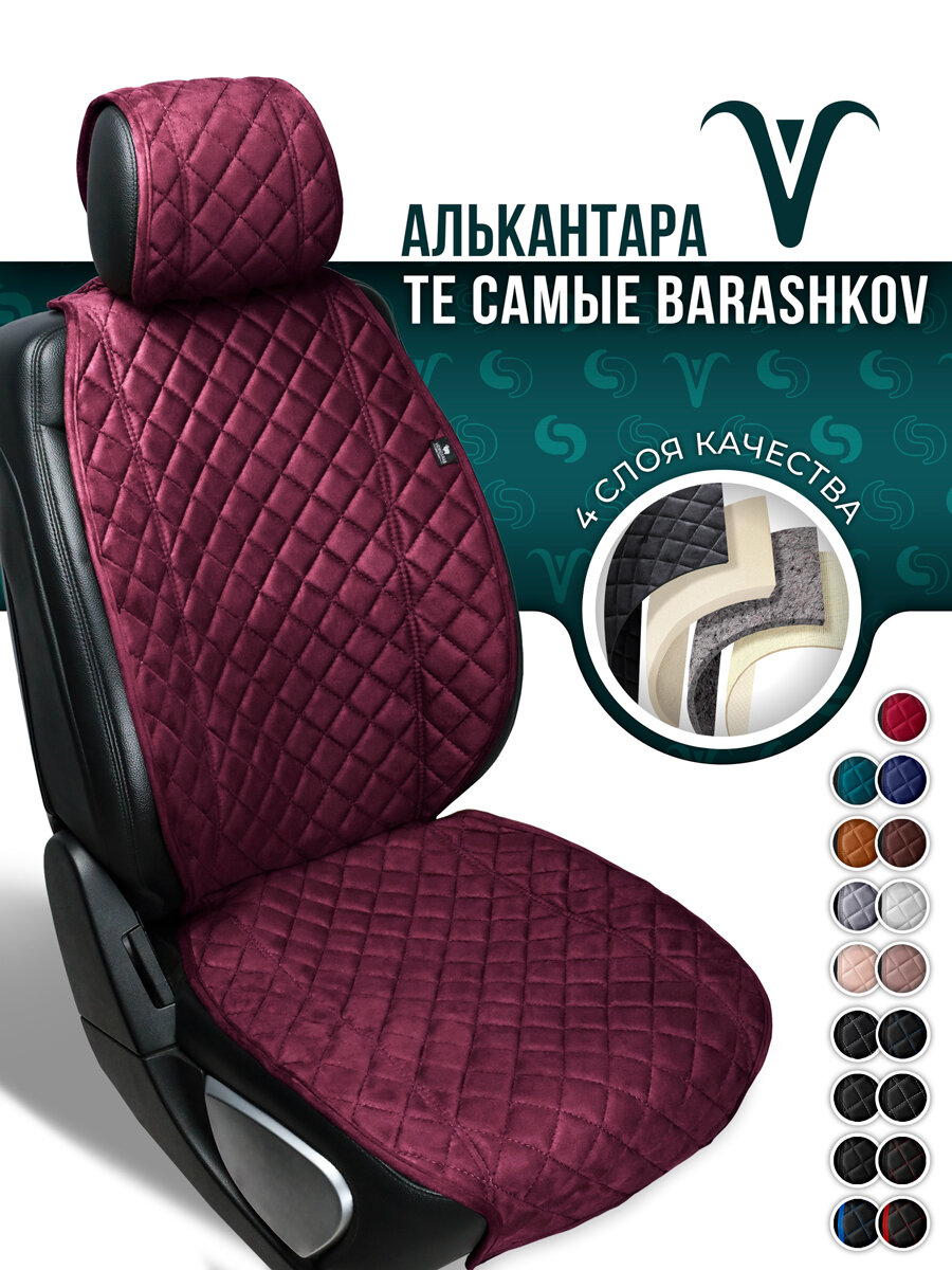10 цен на BARASHKOV/ Накидка чехол на сиденье автомобиля из алькантары на переднее сиденье авто.1шт. Модель L "CLASSIC". Рубиновый