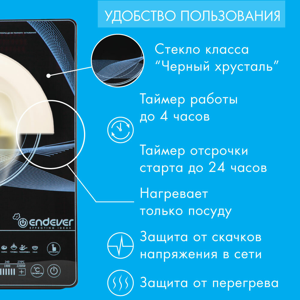 Индукционная плита настольная электрическая Endever Skyline IP-32 / 2200 Вт / до 20 кг / до 270 градусов / 8 автоматических программ