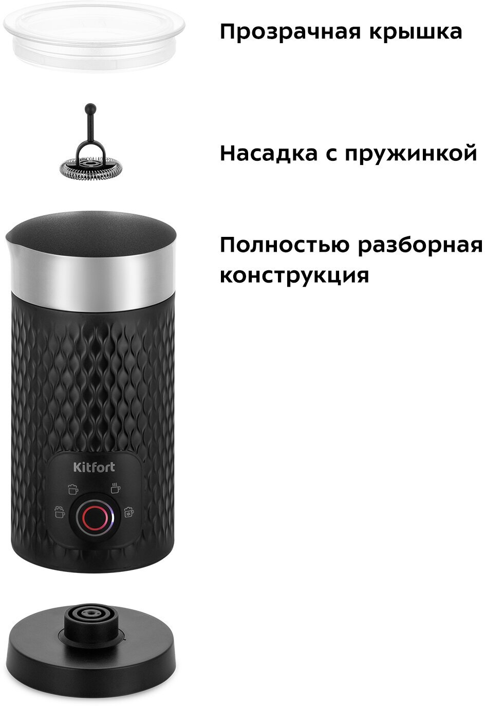 Капучинатор Kitfort Кт-7128-1, 500 Вт, 0.5 л, 4 режима, чёрный Kitfort 10095875 информация: