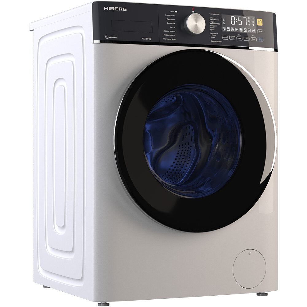 10 цен на Стиральная машина с сушкой HIBERG i-WMQ8 - 10614 W, инверторная, с паром, 10,5 кг загрузка, 1400 об/мин, белый