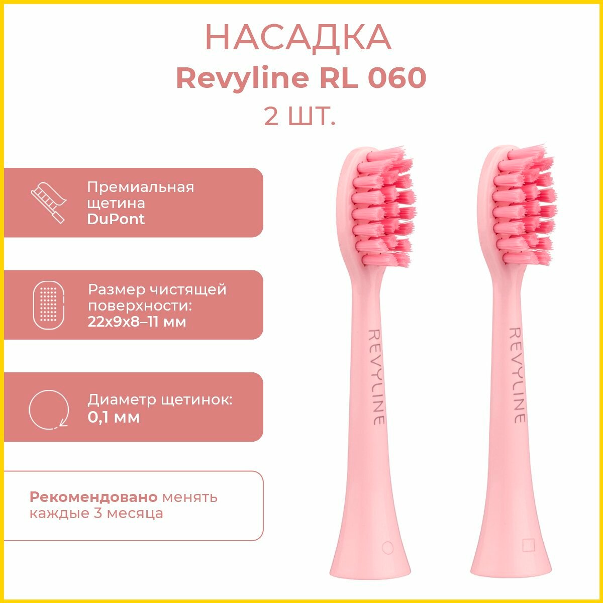 Revyline RL 025 насадки для электрической зубной щётки, розовые, 2 шт
