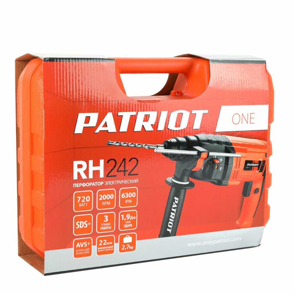 Перфоратор Patriot, RH242, SDS-Plus, 720 Вт, 1.9 Дж, 3 режима, с кейсом. 426677 информация: