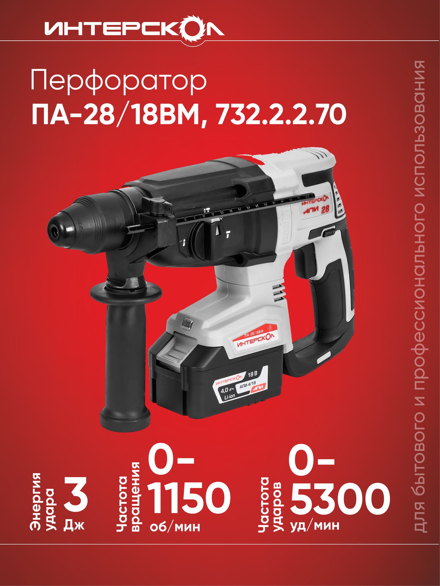 Аккумуляторный перфоратор ИНТЕРСКОЛ ПА-28/18ВM (732.2.2.70)