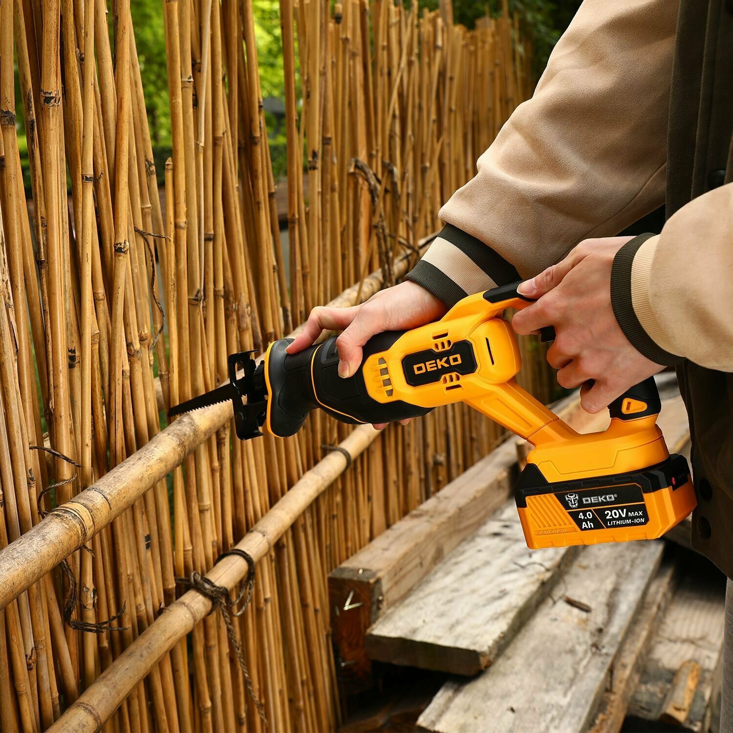 Отзывы на Пила сабельная аккумуляторная Deko DKRS20, 20 B, 2 x 4 Ач Li-ion, ЗУ