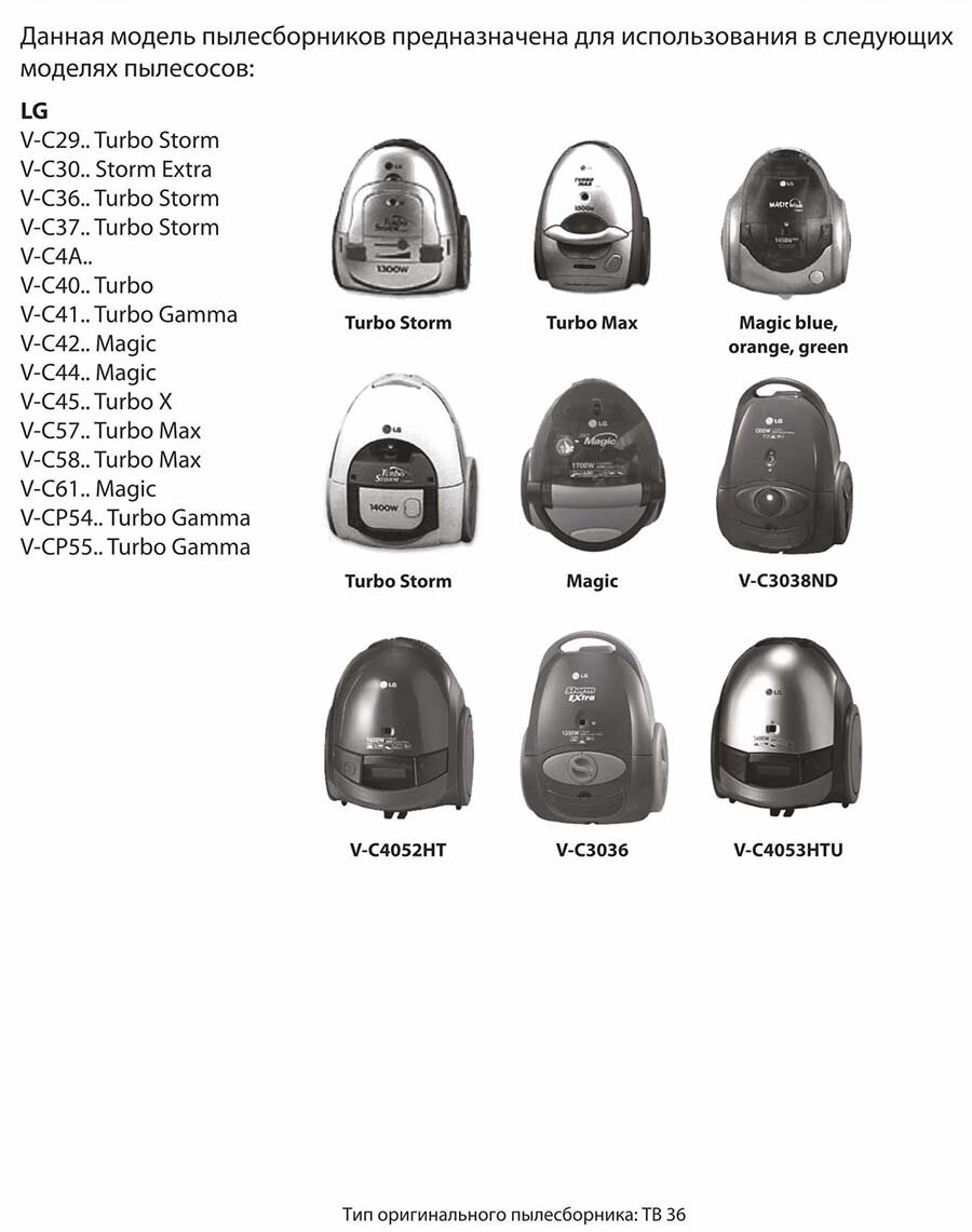 Пылесборники синтетические LG-02 для LG; упаковка 4шт. информация: