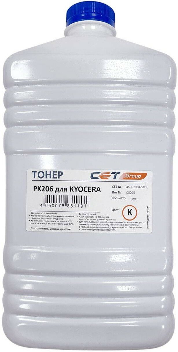 Тонер Cet OSP0206K500 черный бутылка 500гр. для принтера ECOSYS M6030cdn/6035cidn/6530cdn/P6035cdn информация:
