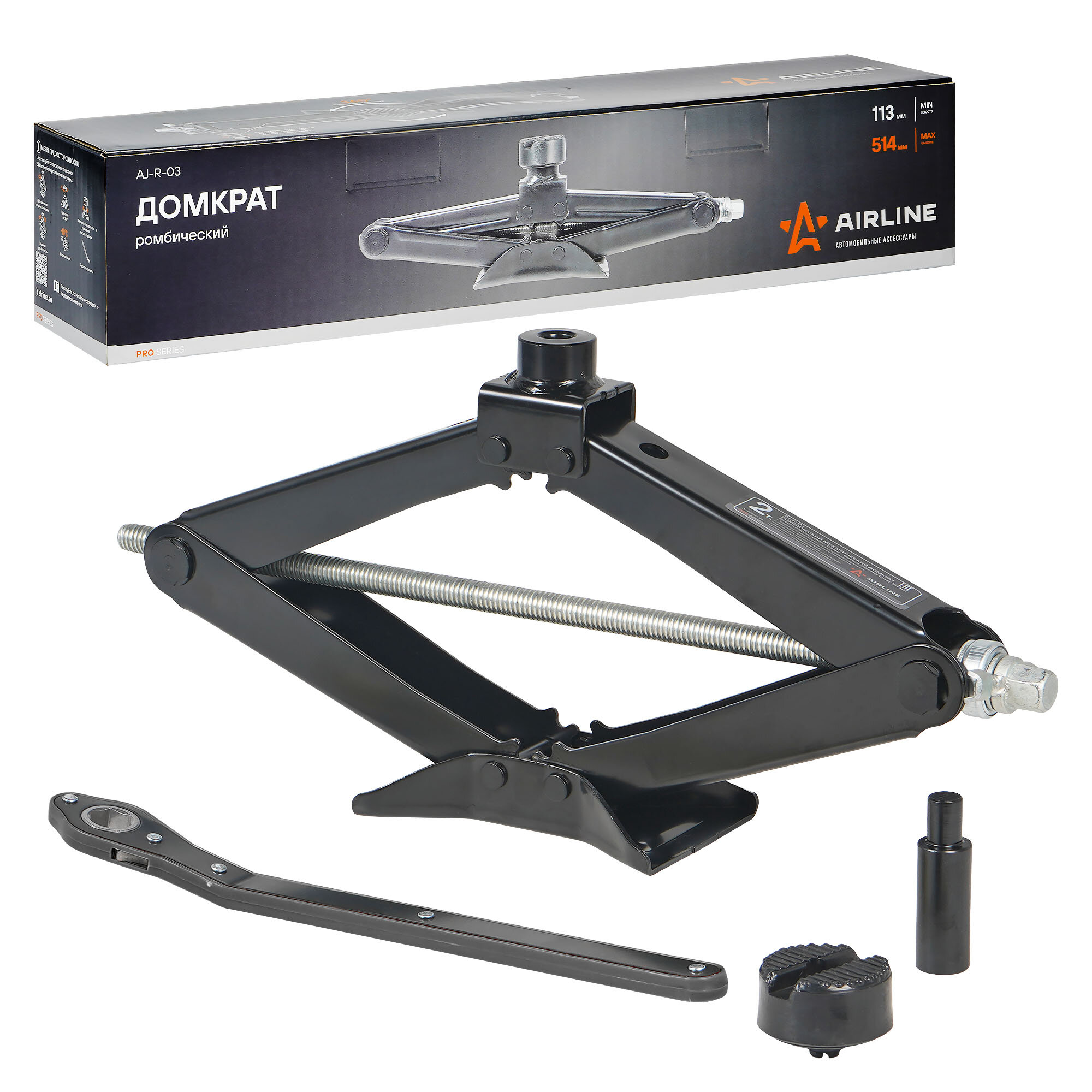 AIRLINE AJ-R-03 Домкрат ромбический 2т PRO (MIN - 113 мм, MAX - 514 мм) AIRLINE AJR03 2 646 ₽